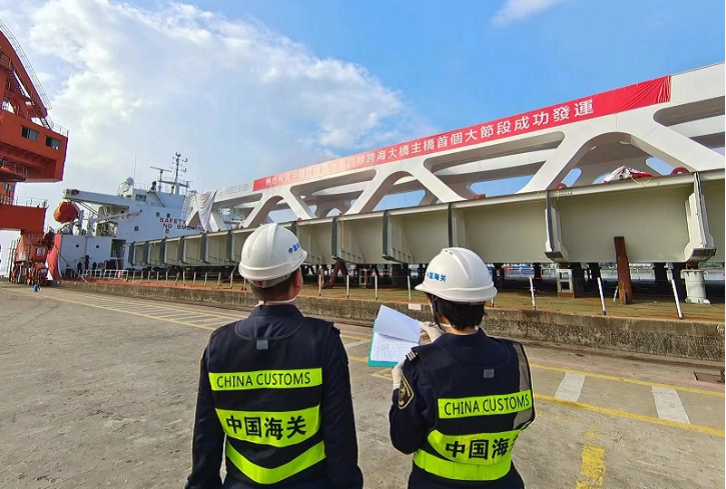 中山港海关积极发挥辖区口岸作为粤港澳大湾区口岸物流枢纽节点的作用,持续优化口岸营商环境,畅通口岸物流通道。为保障澳氹第四条跨海大桥主桥超大型构件顺利出口,提前与企业对接,掌握货物到港时间及出运计划,制定“随船视频监控+口岸验核+快速通关”的监管方案,协调港口做好泊位调度,指导企业规范申报,优先办理通关检查手续,为承运船舶高效办理转外贸航行手续,保障货物如期交付。(施宽/文)