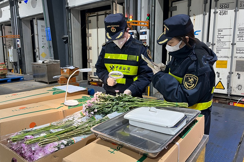 外港海关查验十科副科长罗臻介绍:“进入鲜切花进口旺季,我们针对产品保鲜期较短、通关时效要求高等特点,主动对接企业掌握进口计划和到港时间,采取两步申报、两段准入、提前申报等便利措施,实现随到随查,保障货物安全高效通关。”