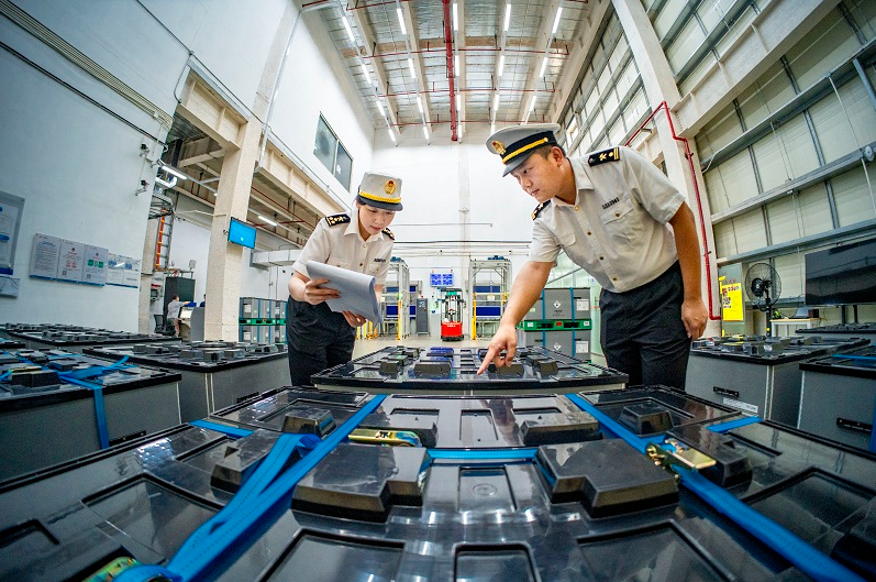 深圳海关持续为辖区企业提供共建“一带一路”国家等新兴市场的进口标准规范、技术性贸易要求和原产地签证等全方位政策指导,推动锂电池出口目的地多元化发展。
